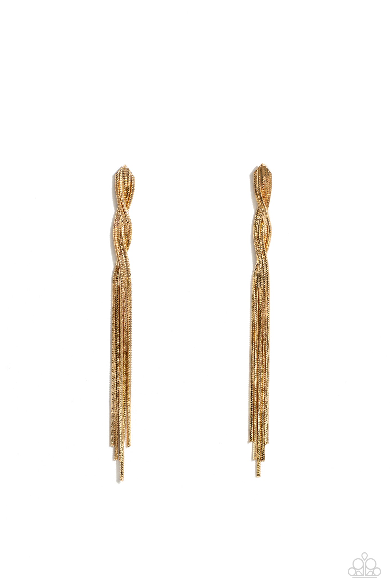 Ropes of gold snake chains gently twist and release into a timeless tassel, resulting in a classic shimmer. Earring attaches to a standard post fitting.