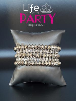 Held together with a sleek silver fitting, edgy rows of faceted silver beads and glittery white rhinestones are threaded along stretchy bands around the wrist, creating glamorous layers.Sold as one individual bracelet.