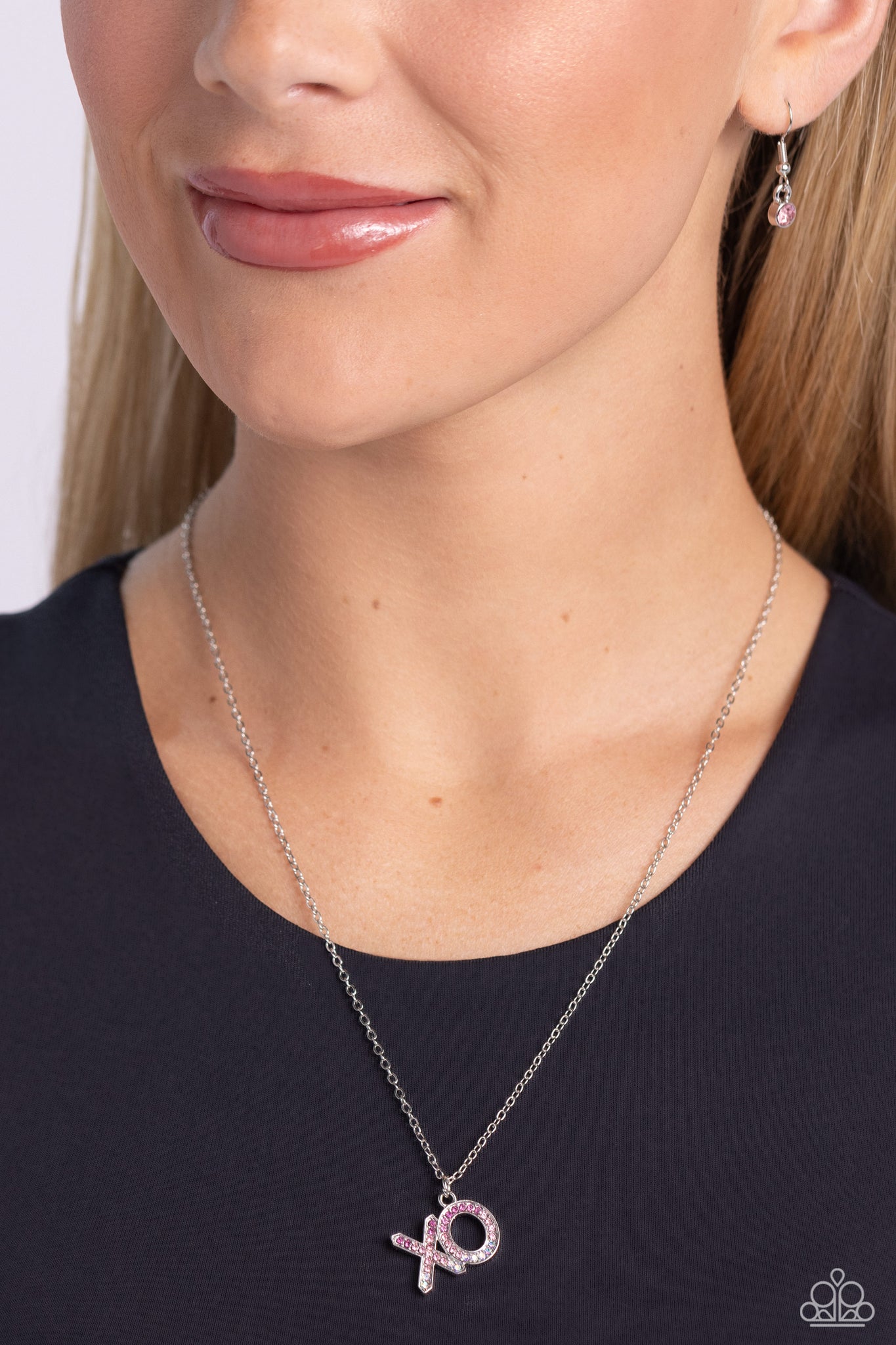 Cascading from a dainty silver chain, the silver letters "XO" are embossed in various glistening pink rhinestones, creating a romantic ombré statement down the neckline. Features an adjustable clasp closure. Due to its prismatic palette, color may vary.